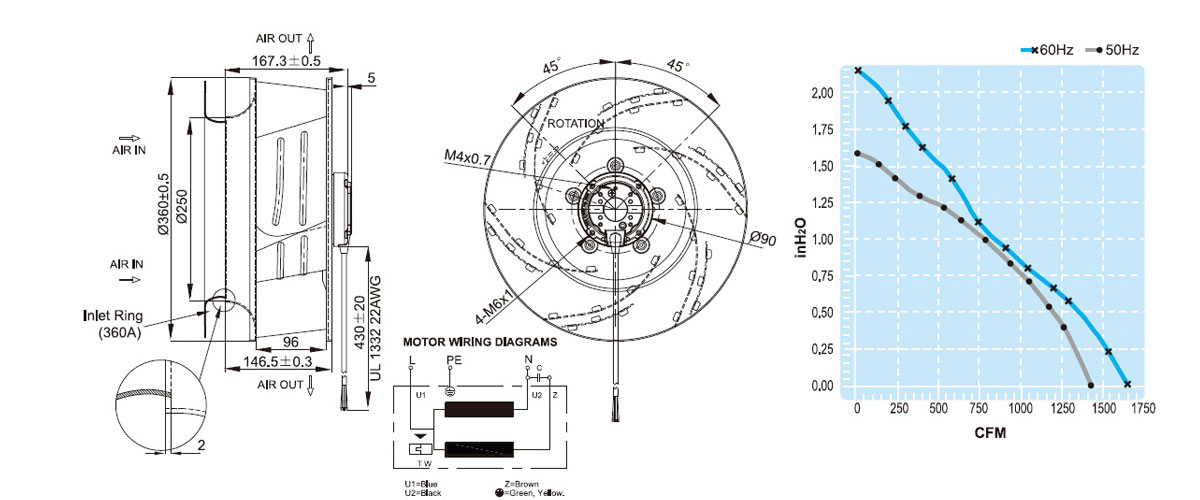 UF360AAA11H1C4A原裝臺灣進口福佑離心風機電子設備屋頂吸力散熱